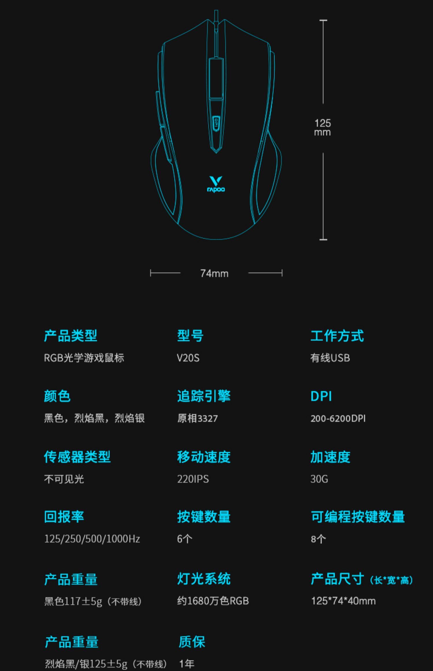 光学分辨率:3000dpi工作方式:光学颜色分类:【收藏+加入购物车】享一年质保★次日达 V20S【磨砂黑】RGB炫酷灯效★电竞传感器 V20S【裂纹黑】RGB炫酷灯效★电竞传感器 V20S【烈焰银】RGB炫酷灯效★电竞传感器 V20PRO【黑色幻彩】RGB炫酷灯效★PMW3325游戏引擎 V22S【黑色磨砂】RGB炫酷灯效★电竞传感器 V25S【黑色】RGB炫酷灯效★电竞传感器 V25S【粉色】RGB炫酷灯效★电竞传感器 V28S【黑色】RGB炫酷灯效★电竞传感器