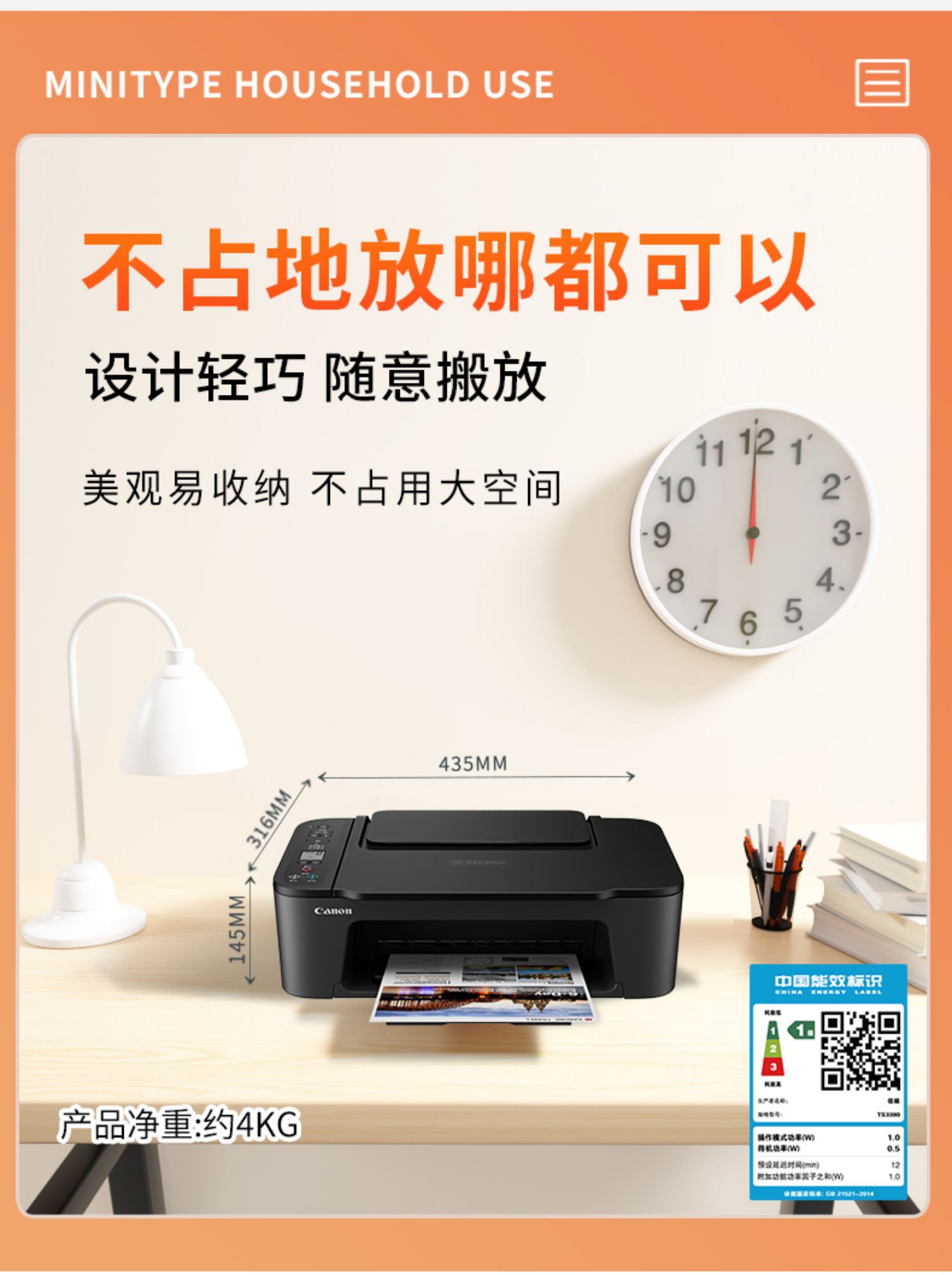 生产企业:佳能能效等级:一级适用场景:家庭及居家办公